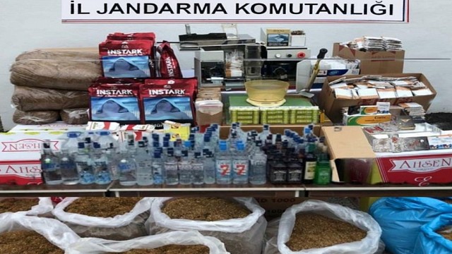 Balıkesir İl Jandarma Komutanlığı, KOM Şube Müdürlüğü ve Gönen İlçe Jandarma Komutanlığı ekiplerince, Gönen ilçesinde kaçak, bandrolsüz sigara ve içki ticaretine yönelik yapılan istihbari çalışmalar neticesinde N.Ö. isimli şahsa ait 3 ev ve 1 iş yerinde yapılan aramalarda sigara doldurma makinaları ,tütünler ve 1500 adet cinsel uyarıcı hap ele geçirildi. Yapılan operasyonda 1 adet otomatik sigara doldurma makinası, 1 adet tütün kıyma makinası, 1 adet tütün kurutma makinası, 1 adet hassas terazi, 180 kg. yaş tütün, 100.000 adet boş makaron, 10.000 adet dolu makaron, 7.500 adet sigara naylon poşeti, 200 adet karton sigara paketi, 10.000 adet sigara kâğıdı, 50 adet puro, 1500 adet cinsel uyarıcı hap ve 36 şişe 7.2 lt. sahte rakı yapımında kullanılan anason aroması ele geçirilmiştir. Olayla ilgili olarak Cumhuriyet Savcılığına bilgi verilmiş olup alınan talimat ile ele geçirilen malzemelere el konularak şüpheli hakkında adli tahkikata başlanıldığı bildirildi. Haber: Pervin BÖLÜKBAŞI