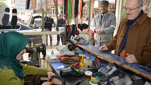 KAFAOĞLU’NDAN KADIN AYAKKABI TAMİRCİSİNE ZİYARET