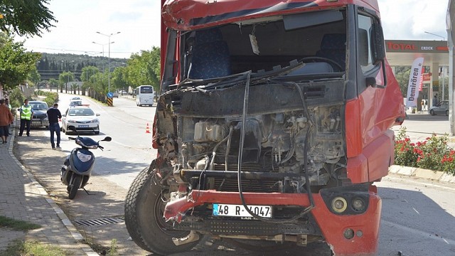 Kamyon, iş makinesine çarptı, 2 yaralı