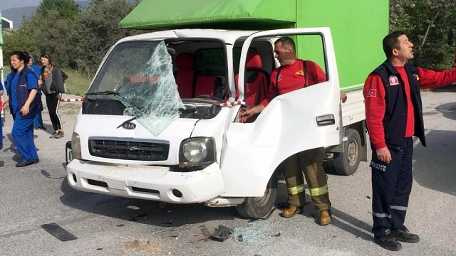 Kamyonet ile kamyon çarpıştı, 1 yaralı