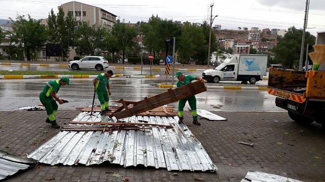 Balıkesir merkezde saat 10.30 sıraları başlayan fırtına ve dolu sonrası çok sayıda ağaç kırıldı. Yolara devrilen ağaçlar Karesi Belediyesi ekipleri tarafından müdahale edilerek kaldırıldı. Yollarda oluşan çamur ekipler tarafından temizlenmeye başladı. Balıkesir'de saat 10.30'da başlayan sağanak yağış kent merkezi ile Adnan Menderes Mahallesi'nde etkili oldu. Yağmurun doluya çevirmesi ile şiddetini arttıran fırtına ağaçları yerinden söktü, çatıları uçurdu. Yağmurun hemen ardından Karesi Belediyesi'nin saha birimleri Park Bahçeler ve Temizlik İşleri Müdürlüğü'ne bağlı ekipler 444 99 10 numaralı çağrı merkezine gelen talepler doğrultusunda müdahaleye başladı. Çarşı merkezde ve özellikle Adnan Menderes Mahallesi'nde yola devrilen ağaçlar yoldan kaldırıldı ve yollar ulaşıma açıldı. Çatılardan yollar düşen çatı parçaları da kaba atık araçları ile toplandı. Ekipler, Şehir merkezinde yola devrilen ağaçları, Adnan Menderes Mahallesi muhtarlık altı yol üzerine düşen ağaçları, 23 Nisan Deniz Göçkün Okulu bahçesine devrilen ağaçları, eski Edremit Caddesi üzerindeki ağaçları, Vicdaniye Mahallesi'nde bir evin üzerine devrilen ağaçları parçalayarak kaldırdı. Ayrıca sağanak yağmur nedeni ile yollara taşan çamur ekipler tarafından temizlenmeye başladı. Ekiplerimiz halen çalışmalara devam ediyor.