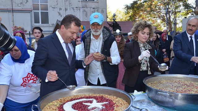 Karesi Belediyesi tarafından düzenlenen 3. Karesi Kültür ve Sanat günleri etkinliğinde vatandaşlara 3 bin kişilik aşure dağıtıldı. Karesi Belediyesi tarafından bu yıl 3.'sü düzenlenen Karesi Kültür ve Sanat günleri Karesi Gösteri Topluluğu’nun oyunları ile açıldı. Belediye Başkanı Yücel Yılmaz yaptığı açılış konuşmasında “Çok değerli davetliler bu gün kültür ve sanat festivalimizin açılışına hepiniz hoş geldiniz. Programdan sonra sizlere aşure hayrımız var güzel ve bereketli bir yıl geçsin istiyoruz. Karesi kişilikli, kimlikli şehir olsun diye çıktığımız 2014 Mart ayından itibaren yaptığımız etkinlikler Balıkesir’in değerlerini ortaya koymak bunların görülebilir haline gelmesi ve sanatçılarımıza değer vermek, öğrencilerimize tiyatro keyfini tattırmak, tiyatro oynamak isteyen insanlarımıza bu duygularını yaşamasını sağlamak, jazz dinlemek isteyen insanlara jazzı performans olarak sunan arkadaşlarla buluşturmak hepsi bizim görevimizdi. Bu 20 günlük süre içerisinde Balıkesir’de sanat, şiir, kitap, resim konuşulacak. Kulüplerimizin farklı etkinlikleri konuşulacak. Bu günde bir sergimiz var, dağcılık kulübümüzün yapmış olduğu etkinlikleri gösteren farklı resim sergimiz açıldı. Sergi salonumuz Avlu projemiz içerisinde orada da farklı etkinliklerimiz var. Ekim ayı etkinliklerle geçecek, 1 yıl boyunca yapılan performansların sunumları gösterileri hepimize hayırlı olsun. Karesi’nin ismini kısa bir süre içerisinde 35 yıl gibi bir kısa süre içerisinde 80 milyonluk sadece Türkiye’ye değil uluslar arası arenada da duyurma şerefine nail olduk. Bu hepimizin övgüyü hak ettiğimiz bir nokta. Ben tüm Karesili hemşehrilerime teşekkür ediyor festivalin hepimize hayırlı uğurlu olmasını temenni ediyorum”dedi. Konuşmanın ardından Balıkesir Dağcılık ve Arama Kurtarma İhtisas Kulübü üyeleri tarafından çekilmiş fotoğraflardan oluşan fotoğraf sergisinin açılış kurdelesini Karesi Belediye Başkanı Yücel Yılmaz, Başkan Yardımcısı Yusuf Hocaoğlu, Belediye eski Başkanı Ziya Tan, BALDAK Başkanı Naim Taracar birlikte kesti. Etkinlik sonunda hazırlanan 3 bin kişilik aşure vatandaşlara ikram edildi. Başkan Yılmaz ilk aşureyi basın mensuplarına dağıttı. (İHA)