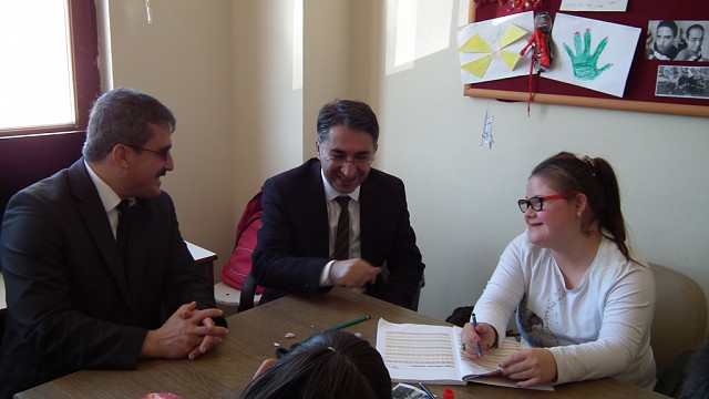 Havran Kaymakamı Şeref AYDIN ve Havran Kaymakam refiki (Çanakkale Kaymakam Adayı) Berker ÇIRAK, Bengi Projesi kapsamında Muzaffer Leman Akpınar Mesleki ve Teknik Anadolu Lisesini ziyaret etti. İlçe Milli Eğitim Müdürü Yusuf SÖBÜOĞLU’nun karşıladığı Kaymakam Şeref AYDIN, aynı zamanda M.L.A. Mesleki ve Teknik Anadolu Lisesi’ni BENGİ Projesi kapsamında koordinatörlüğünü yürüttüğü okul olarak seçti. Okul Müdürü Ali Rıza DÖRTKO’dan okul hakkında bilgi alıp incelemelerde bulunan Kaymakam AYDIN, gönüllü Kızılay çalışanı olan öğrencilerden yaptıkları çalışmalar ile ilgili bilgi aldı. Kütüphaneyi ziyaret ederek öğrencilerle okudukları kitaplar üzerine sohbet ettikten sonra okul kantininde incelemelerde bulundu. Dokuzuncu sınıflarla kitap okuma etkinliğine katılan Kaymakam AYDIN ve İlçe Milli Eğitim Müdürü öğrencilerle sohbet edip gelecek planları üzerine konuştu. Daha sonra öğretmenlerle bir araya gelen Kaymakamımız ve İlçe Milli Eğitim Müdürü SÖBÜOĞLU, meslek liselerinin avantajları ve dezavantajları üzerinde durdu. Kaymakam AYDIN; tecrübeli öğretmenlerimizle meslek hayatına yeni başlayan öğretmenlerimizin enerjisini birleştirerek düzenli, sorumluluk alabilen, kendini geliştirebilen, kendine ve topluma yararlı, insanlara saygı duyan ve toplum tarafından saygı duyulan bireyler yetiştirebilmemiz için ekip ruhunun önemine değindi ve bu şekilde çalışarak aynı zamanda kendi geleceğimize yatırım yaptığımızı belirtti ve “En önemli amaçlarımızdan biri de öğrencilerimizin hayatlarına küçük dokunuşlar yaparak onları güzel bir hayata yönlendirmek ve yeteneklerini keşfetmelerini sağlamak olmalı” dedi. İlçe Milli Eğitim Müdürü Yusuf SÖBÜOĞLU ise yeni okul binasına taşınma esnasında yaşanan güçlüklere göğüs gererek, hiçbir zaman ellerini taşın altına sokmaktan çekinmeyen değerli öğretmenlerimize gösterdikleri çabalar için teşekkür etti. Son olarak özel eğitim sınıfında öğrencilerle keyifli dakikalar yaşayan Kaymakam AYDIN, öğrenciler hakkında bilgi alarak birlikte çeşitli çalışmalar yaptıktan sonra okuldan ayrıldı. Haber: Ayhan KURT