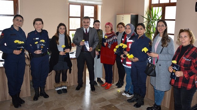KAYMAKAM ODABAŞ, DÜNYA KADIN HAKLARI GÜNÜ DOLAYISIYLA KAYMAKAMLIKTA ÇALIŞAN KADIN PERSONELE ÇİÇEK TAKDİM ETTİ