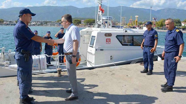Edremit Kaymakamı Ahmet Odabaş, Sahil Güvenlik Kuzey Ege Grup Komutanı SG Yb. Emrah Kadir Çakır ile birlikte Sahil Güvenlik Akçay Kolluk Destek Tim Komutanlığını ziyaret ederek Sahil Güvenlik Akçay Kolluk Destek Tim Amir V. SG. Gv. Asb. Üçvş. Murat Dede’den yürütülen çalışmalar hakkında bilgiler aldı. Sahil Güvenlik Akçay Kolluk Destek Tim Komutanlığınca Edremit körfezinde gerçekleştirilen denetimler hakkında bilgiler alan Kaymakam Odabaş, Sahil Güvenlik Kuzey Ege Grup Komutanlığına bağlı İlçemiz Akçay Kolluk Destek Tim Komutanlığı uhdesi ve emrine görevlendirilen KB-111 borda numaralı kontrol bot ile sahil denetimine katıldı. Edremit Körfezi sahil bölgesinde denizden incelemelerde bulunan Kaymakam Odabaş, daha sonra Sahil Güvenlik Akçay Kolluk Destek Tim Komutanlığı hizmet binasında yürütülen tadilat çalışmaları hakkında yetkililerden bilgiler aldı.