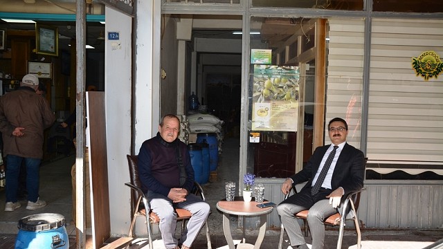 Dünyanın en lezzetli zeytinyağlarının üretildiği yerlerden biri olan Edremit ilçemizde Kaymakam Turgay Ünsal, zeytin-zeytinyağı sektöründe faaliyet yürüten Semercioğlu Zeytinciliğin misafiri oldu. Semercioğlu Zeytincilik Yetkilisi Mehmet H.Semerci ile birlikte ilçemizde zeytincilik sektörünün bölgesel ve ulusal boyutta genel değerlendirilmesinin yapıldığı ziyarette sektörün sorunları ve çözüm önerileri istişare edildi. Ziyaretten duyduğu memnuniyeti dile getiren Mehmet H. Semerci, Kaymakam Ünsal’a teşekkürlerini sundu.