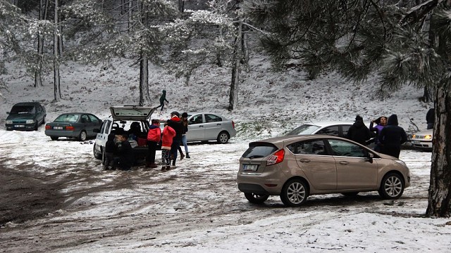 Balıkesir'in Edremit ilçesinde Kazdağları beyazlara büründü. Kuzey Ege'de hava sıcaklığının hissedilir şekilde düşmesinin ardından başlayan yağış kara dönüştü. Kazdağları'nın yüksek kesimleri beyazlara büründü. Kar kalınlığı 5 santimetreye ulaştı. Bazı vatandaşlar yağan karın keyfini piknik yaparak çıkardı. (İHA)