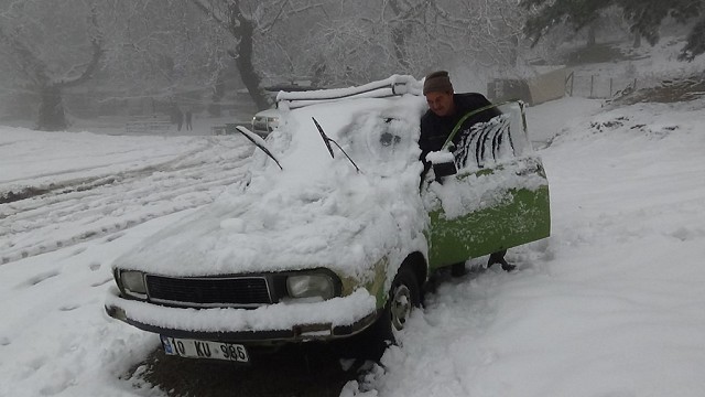 Balıkesir’in Edremit ve Havran ilçelerinin yüksek kesimlerine dün akşamdan bu yana yağan kar araç trafiğini olumsuz etkiliyor. Balıkesir’in Edremit ile Çanakkale’nin Yecine ilçeleri arasında kalan ve Kazdağları'ndan geçen karayolunda etkili olan kar yağışı araç trafiğini olumsuz etkiliyor. Karayolları ekipleri yolun kapanmaması ve buzlanmaması için aralıksız küreme ve tuzlama çalışması yapıyor. Buna rağmen kar yağışına hazırlıksız yakalanan bir çok sürücü sıkıntılı anlar yaşıyor. Kar yağışı ve buzlanma kazalara neden olurken bazı araçlarında soğuk nedeniyle arıza yaparak yol kenarlarında kaldığı gözleniyor. Yetkililer kar yüksekliğinin 7 santimetreye kadar ulaştığı bölgeden geçecek sürücülerin zincir, kar lastiği ve çekme halatı olmadan yola çıkmamaları gerektiğini ifade ettiler. Kar yağışının bölgede Cumartesi gününe kadar aralıklar ile devam edeceği öğrenildi. (İHA)
