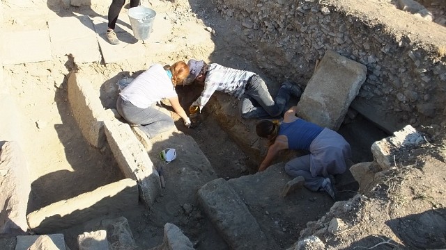 Balıkesir’in Burhaniye ilçesinde, Adramytteion Antik Kenti'nde, 2017 yılı kazı çalışmalarının sonuna yaklaşılırken, Milattan sonra 800 yıllarında yapılmış olan kilise kalıntısına rastlandı. Kazı başkanlığını yürüten Kuzey Ege Arkeoloji Araştırmaları ve Uygulama Merkezi Müdürü Yrd. Doç. Murat Özgen, başta Mimar Sinan Üniversitesi olmak üzere farklı üniversitelerin katıldığı, belediyenin de destek verdiği Adramytteion Antik Kenti'ndeki kazı çalışmalarının 2012'den beri yapıldığını söyledi. Ören Mahallesindeki Balıkesir Kuvvayı Milliye Müzesinin denetimindeki Adramytteion Antik Kenti kazılarıyla ilgili Koruma Amaçlı İmar Planı'nın onaylandığını anlatan Özgen, kazı çalışmalarının iki hafta sonra tamamlanacağını açıkladı. Kazı Başkanı Yrd.Doç.Dr. Murat Özgen, ”Bu yıl kazı çalışmalarımız bizim C bölgesi olarak adlandırdığımız Ören tepenin üzerindeki yüksek tepecikteki alanda devam ediyor. 2000-2006 yıllarındaki kazılarda arkamızda büyük bir kilise bulunmuştu. Milattan sonra 11.yüzyıla tekabül eden bir kilise. Biz 2 yıl önce yaptığımız çalışmada bir başka kilisenin apsesine denk geldik. Mimari incelemelerde, 11.yüzyılda Çakabey’ın burada etkisiyle bir yıkım gerçekleştiğini zaten biliyorduk. Bunu doğrular nitelikteki tespit ettiğimiz MS. 800. yüzyıl kilisesi tahrip edilmiş. Fakat bu yıkımlardan sonra tekrar fonksiyonu daraltılmış ve mezar şapel olarak kullanılmış olduğunu gördük. Şu anda mezar şapel içindeki mezarlardan biri açılmaktadır. Çalışmalarımız depo çalışması ve yayın çalışması şeklinde davam edecek. İki haftalık süremiz var. İki hafta içindeki zamanı verimli bir şekilde devam ettirerek, planladığımız diğer etüt çalışmalarına gerçekleştirerek devam ettireceğiz. Koruma amaçlı imar planımız da onaylandı” dedi. Ertunç Denktaş da, ”Açıkçası 205 yılından beri katıldığım bu çalışmanın verimli ve keyifli geçtiğini söyleyebilirim. Ören bir anlamda körfez bölgesinde önemli noktalardan biri. Başta Murat Özgen olsun onlarla ve ekibiyle Örende çalışmaktan mutluyum” dedi. Bedel Emre ise, ”Örende yapılacak bu çalışma daha önce başka herhangi bir yerde yapılmış çalışma değil. İlk defa coğrafi bilgi sistemde arkeolojik alanların envanteri tutulmuş olacak. Bu yüzden hepimiz çok heyecanlıyız” dedi. Melisa Yağmur da, ”Burhaniye çok güzel bir yer. Kültürel anlamda tarihi olarak, buradaki çalışmalara katılmak benim için çok mutlu.edici. Açıkçası burada olmak çok güzel. Buralıyım zaten. Burada böyle bir çalışmada yer almak sevindirici ve deneyim açısından da çok önemli” dedi. Balıkesir Kuvvayı Milliye Müzesi Arkeoloğu Sebahattin Gül de, ”Şu an çalışmalar gayet iyi gitmektedir. Kültür varlığı anlamında, değerli Burhaniye Ören’e katkı sağlayacak. Turizm anlamında insanların ilgisini çekecek. bir çalışma. Çalışmalarımız, müzemiz ve Mimar Sinan Üniversitesi ile uyum içinde devam etmektedir. Umarım bundan sonraki yıllardaki çalışmalar, hem ülkemiz, turizmimiz ve Ören’in tanıtımı açısından hayırlı uğurlu olsun” dedi. (İHA)