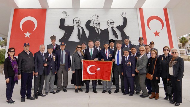 Kuzey Kıbrıs Türk Cumhuriyeti Cumhurbaşkanı Ersin Tatar, Ayvalık Belediye Başkanı Mesut Ergin, Belediye Meclis üyeleri, Türkiye Muharip Gaziler Derneği Ayvalık Şube Başkanı Mehmet Kıranoğlu ve Ayvalıklı gazileri makamında kabul etti. Cumhurbaşkanı Tatar, kabulde heyeti KKTC’de görmekten duyduğu memnuniyeti dile getirdi. Ayvalık Belediye Başkanı Mesut Ergin, Meclis üyeleri, Türkiye Muharip Gaziler Derneği Ayvalık Şube Başkanı Mehmet Kıranoğlu ve Ayvalıklı Gaziler, Kuzey Kıbrıs Türk Cumhuriyeti Cumhurbaşkanı Ersin Tatar’ı, ziyaret etti. Ayvalık heyeti tarafından, Kuzey Kıbrıs Türk Cumhuriyeti Kurucu Cumhurbaşkanı Rauf Denktaş’ın ve Özgürlük Mücadelesi Lideri Dr. Fazıl Küçük’ün kabri ve Kıbrıs Barış Harekatı’nda mücadele eden kahramanların yattığı şehitlik ziyaret edildi. Ziyaretler sırasında Ayvalıklı gaziler, K.TMT. Mücahitler Derneği’nde Kıbrıslı Gazilerle buluştu. Ayvalık Belediye Başkanı Mesut Ergin, “Gazilerimiz 51 yıl sonra ilk kez gazi mertebesine erdikleri bu güzel toprakları görme fırsatı buldular, gururluyuz, mutluyuz. Kardeş kentimiz Girne Belediye Başkanı Murat Şenkul’a nazik misafirperverlikleri için teşekkür ederiz” dedi. 1974 yılında gerçekleştirilen Kıbrıs Barış Harekatı ile yeni bir döneme başlandığını hatırlatan Ersin Tatar, Anavatan Türkiye ile olan ilişkilere değinerek, geleceğe daha güçlü ve emin adımlarla yürümeye devam ettiklerini söyledi. Tatar, “Kıbrıs Türkü’nün istiklal mücadelesiyle bugünlere kadar gelindi. Ama bu Kıbrıs Türkü’nün de ötesinde büyük bir milli zaferdir. Kıbrıs Türk halkının barışı, huzuru ve güvenliğini kolay elde edilmedi. Biz huzurumuzu, güvenimizi, bu istikrarı ve barışı sağlayan Türk Silahlı Kuvvetleri’ne minnet borçluyuz. Anavatan Türkiye ve Kuzey Kıbrıs Türk Cumhuriyeti ile olan ilişkilerin son yıllarda en üst düzeyde yürütülüyor” dedi. Kuzey Kıbrıs Türk Cumhuriyeti Cumhurbaşkanı Ersin Tatar, Kıbrıs Barış Harekatı’nın Kıbrıs’ın tarihinde en önemli harekat olduğunu ifade ederek, “Bu harekat olmasaydı, bugün Kıbrıs’ta bir Türk kalmayacaktı. Kıbrıs Barış Harekatı sırasında dönemin Başbakanı merhum Bülent Ecevit ve Başbakan Yardımcısı Necmettin Erbakan’a Allah’tan rahmet diliyorum, mekanları cennet olsun” dedi. Kuzey Kıbrıs Türk Cumhuriyeti’nde olmaktan duydukları mutluluğu dile getiren Ayvalık Belediye Başkanı Mesut Ergin de, “Türkiye Muharip Gaziler Derneği Ayvalık Şubemizin üye gazileri, Kıbrıs Barış Harekatı’ndan 51 yıl sonra ilk defa Kıbrıs’ı ziyaret etme fırsatı buldu. Böyle önemli bir geziyi Ayvalık Belediyesi olarak düzenlemekten büyük bir mutluluk ve gurur duyuyoruz. Kıbrıs Barış Harekatı’na katılan 20 gazimiz ve eşleriyle beraber, Kıbrıs’ta bulunmaktan çok mutluyuz. Başta şehitlikler olmak üzere ziyaretlerde bulunduğumuz yerlerde gazilerimiz ve geziye katılan tüm heyetimiz duygusal anlar yaşadı” dedi. (Bülten)
