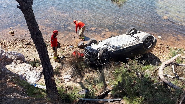 Kontrolden çıkan araç sahile uçtu, 3 yaralı