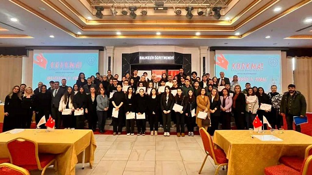 İstiklâl Marşı'mızın kabulünün 105. yıl dönümü ve Millî Şairimiz Mehmet Âkif Ersoy'u Anma Günü etkinlikleri kapsamında, Millî Eğitim Bakanlığı himayelerinde düzenlenen "Korkma! Gençliğin Ruhu Burada" temalı liseler arası bilgi yarışmasının Balıkesir il finali, büyük bir coşku ve heyecana sahne oldu. Balıkesir İl Milli Eğitim Müdürlüğü’nden yapılan açıklamada, “Yarışmanın final programına İl Millî Eğitim Müdür Yardımcılarımız Mustafa Uras ve Ahmet Cengiz katılarak öğrencilerimizin heyecanına ortak oldu. Balıkesir Öğretmenevi'nde gerçekleştirilen il finaline, ilçelerinde birinci olarak yarışmaya katılmaya hak kazanan liselerimiz iştirak etti. Gençlerimiz, Millî Mücadele ruhunu ve Âkif'in mirasını bilgiyle harmanlayarak kürsüye taşıdı. Sergiledikleri özgüven, donanım ve tarih bilinci, salonda gurur dolu anlar yaşattı. Yarışma sorunsuz bir şekilde tamamlanırken, ilk 20 soru sonunda en yüksek puanı alan Karesi İstanbulluoğlu Sosyal Bilimler Lisesi il birincisi oldu. Edremit Anadolu Lisesi ikinci, Gönen Anadolu Lisesi ise üçüncü olarak yarışmayı tamamladı. Millî ve manevi değerlerimizi genç nesillere aktarmayı amaçlayan bu anlamlı organizasyonda emeği geçen tüm öğretmenlerimize ve katılım sağlayan okullarımıza teşekkür ediyor; il birincisi olarak bölge finaline katılacak olan Karesi İstanbulluoğlu Sosyal Bilimler Lisesi'ne başarılar diliyoruz.” Denildi. Haber: Hasan AKAR