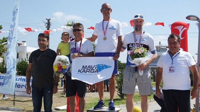 Burhaniye ilçesinde, Triatlon Federasyonun düzenlediği yarışlarda büyük heyecan yaşanırken, ikincilik ödülü alan Mustafa Kumbaracı, kucağında oğlu Deniz Kumbaracı ile birlikte kürsüye çıktı. 40-44 yaş gurubunda ikinci olduğunu anlatan Mustafa Kumbaracı, sağlığı elverdiğince bu sporu yapmaya devam edeceğini söyledi. Burhaniye’de düzenlenen triatlon yarışmaları büyük ilgi görürken, Bursalı bankacı 42 yaşındaki Mustafa Kumbaracı da, 40-44 yaş grubunda ikinci oldu. Ödülünü Federasyon Başkanı İsa Tamer Çelik’in elinden alan Mustafa Kumbaracı, 1 yaşındaki oğlu Deniz Kumbaracı ile kürsüye çıktı. Triatlon sporunu sevdiğini belirten Mustafa Kumbaracı, ” 5 yıldan bu yana bu sporu yapıyorum. Bu günde Burhaniye’de yarıştım. Çok güzel bir yarış oldu. İkinci oldum. Kürsüye de oğlum Deniz ile birlikte çıktım. 11 yaşında Yamaç adında bir oğlum daha var. O da yüzücü. Sağlığım elverdiğince bu sporu yapmaya çalışacağım” dedi. (İHA)