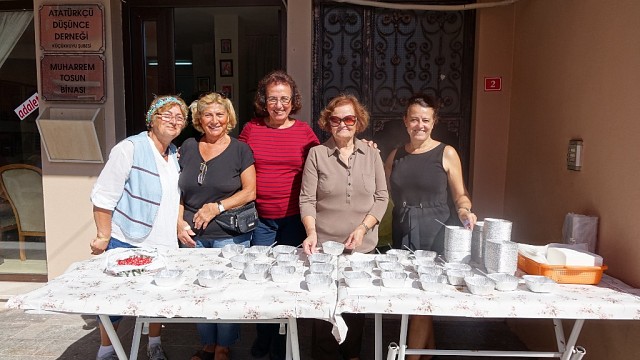 ATATÜRKÇÜ Düşünce Derneği (ADD) Küçükkuyu Şubesi, Muharrem ayı dolayısıyla aşure dağıttı. Cumartesi günü saat 12.00’de çarşı içinde bulunan dernek lokalinde gerçekleşen aşure etkinliğine vatandaşlar yoğun ilgi gösterdi. Misafirlerine kendi elleriyle aşure ikramında bulunan ADD Şube Başkanı Ayşe Taşkent, Muharrem ayı nedeniyle başlattıkları aşure dağıtımını geleneksel hale getirdiklerini söyledi.Taşkent, aşure davetine iştirak eden herkese teşekkür ederek, “ADD Küçükkuyu Şubesi olarak Bu tür etkinlikler aynı zamanda yardımlaşma ve kaynaşmayı da beraberinde getirdiğini söyledi. Muharrem ayı nedeniyle ADD Üyelerinin katkılarıyla hazırlanan iki kazan Aşure üyeler tarafından konuklara dağıtıldı. Haber ve fotoğraf: Hanife ERDİNÇ