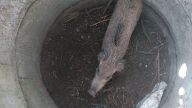 Kuyuya düşen domuzu itfaiyeciler kurtardı