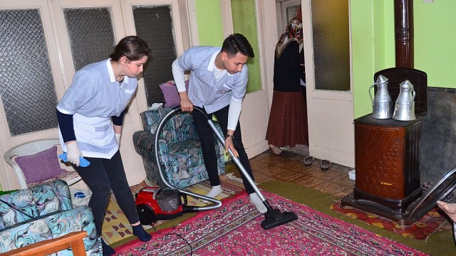 Lise öğrencileri hem okuyor hem de yaşlılara bakıyor