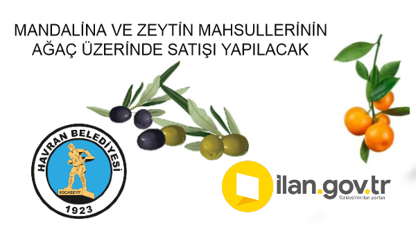 Havran Belediye Başkanlığı'ndan mandalina ve zeytin mahsullerinin ağaç üzerinde satışı yapılacaktır.