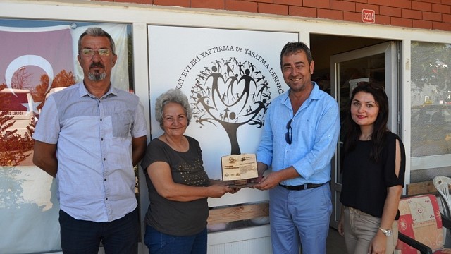 Ayvalık ilçesinde, ihtiyaç sahibi vatandaşların yardımına Hızır gibi yetişmesiyle tanınan Ayvalık Şefkat Evleri Yaptırma ve Yaşatma Derneği Başkanı Fatma Cavlı’ya, İlçe Milli Eğitim Müdürlüğü tarafından düzenlenen ‘Kitaptan Kanatlar’ adlı proje verdiği destek nedeniyle plaket geldi. Balıkesir Valiliği tarafından il genelinde yürütülen BENGİ Projesi kapsamında; Ayvalık Kaymakamlığı, Ayvalık Belediyesi ve İlçe Milli Eğitim Müdürlüğü tarafında düzenlenen ilçedeki öğrenciler başta olmak üzere vatandaşları kitap okumaya teşvik etmeyi amaçlayan ‘Kitaptan Kanatlar’ adlı projenin bu yılki etabı tamamlandı. İlçe genelinde Ayvalık Kaymakamı Namık Kemal Nazlı başta olmak üzere Belediye Başkanı Rahmi Gençer, İlçe Milli Eğitim Müdürü Güner Bahadır’ın öncülüğünde; ilçedeki resmi daire müdürleri, kurum amirleri, sivil toplum kuruluşlarının başkanlarının da okullara giderek, öğrencilerle birlikte 20 dakika kitap okuduğu kampanya ya destek verenler İlçe Milli Eğitim Müdürlüğü tarafından hazırlanan plaketlerle onurlandırıldı. (İHA)