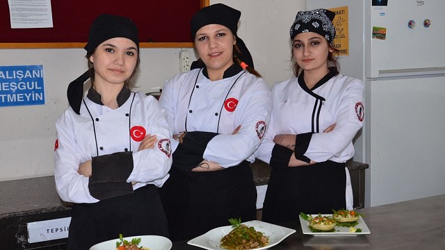 Balıkesir Gazi Mustafa Kemal Mesleki ve Teknik Anadolu Lisesinde düzenlenen Balıkesir yöresine ait zeytinyağlı yemekler yarışmasında yiyecek içecek bölümü öğrencileri hünerlerini sergiledi. Kıyasıya geçen mücadelenin sonunda birinciliği zeytinyağlı kuşbaşılı bakla yemeği kazandı. Balıkesir Gazi Mustafa Kemal Mesleki ve Teknik Anadolu Lisesinde düzenlenen Balıkesir yöresine ait zeytinyağlı yemekler yarışmasında yiyecek içecek bölümü öğrencileri hünerlerini sergiledi. Öğrenciler hazırladıkları yemekler kadar sunumları ile de göz doldururken jüri üyelerinin ise oy vermekte zorlandıkları gözlerden kaçmadı. Zorlu geçen mücadelenin sonucunda Melis Ceylin Bursalı zeytinyağlı enginar, İrem Kurnaz zeytinyağlı barbunya ve Dilara Demir ise zeytinyağlı kuşbaşılı taze bakla ile finale kaldı. Yapılan oylamanın ardından Dilara Demir yaptığı yemekle birinciliği kazandı. Yiyecek İçecek Hizmetleri Öğretmeni Nilgün Hayal Koca yarışma ile ilgili olarak yaptığı açıklamada “Sınıftaki öğrencilerimiz arasında Balıkesir yöresine özel zeytinyağlı yemek yarışması düzenledik. 3 öğrencimiz ve 3 yemekle finale kaldı. Bunlar zeytinyağlı enginar, zeytinyağlı barbunya ve zeytinyağlı kuşbaşılı taze bakla yemeklerini değerlendirdik. Finale kalan bu üç yemekten zeytinyağlı bakla yemeğini pişiren öğrencimiz başarılı olarak birinciliği elde etti. Zeytinyağlı barbunya yemeğini pişiren öğrencimiz ikinci ve diğer zeytinyağlı enginar yemeğini pişiren öğrencimizde üçüncü olarak bitirdi yarışmayı. Öğrencilerimizin bu yarışmaya teşvik edilmiş olmaları bizin için avantaj. Çünkü onları biz her zaman bu alanda geliştirmeye çalışıyoruz. Bu tip yarışmalar onlar için özendirici oluyor. Mesleki anlamda gelişmelerine yardımcı oluyor. Bunun dışında öğrencilerimizi yarışma temposuna sokuyoruz ki önümüzdeki senelerde okul bazında gideceğimiz yarışmalar içinde hazırlık ve alt yapı oluşturmuş oluyoruz" dedi. Yarışmada zeytinyağlı kuşbaşılı taze bakla yemeği ile birinciliği elde eden 11. sınıf öğrencisi Dilara Demir ise "Okulumuzda yapılan zeytinyağlı yemekler yarışmasında yemeğim birinci oldu zeytinyağlı kuşbaşılı etli bakla yemeği vardı. Aşırı heyecanlı ve mutluyum kazandığım için. Ama ikinci olan arkadaşımı da tebrik ederim" şeklinde konuştu. (İHA)