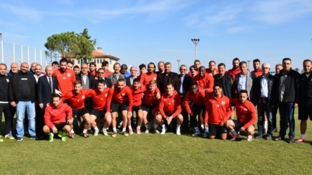 Milliyetçi Hareket Partisi (MHP) Balıkesir İl Başkanı ve yönetim kurulu üyeleri Balıkesirspor Baltok'un tesislerinde gerçekleştirdiği antrenmana giderek, teknik heyet ve futbolculara Cumartesi günü oynayacakları Gaziantepspor maçı öncesi baklava ikram etti. TFF 1.Ligin 8. haftasında Gaziantepspor ile karşılaşacak Balıkesirspor Baltok, maçın hazırlıklarına devam ediyor. Isınma ve koordinasyon ile başlayan antrenman, taktik çalışma ve aerobik dayanıklılık çalışmasının ardından, 4 kaleli dar alan oyunu ile devam etti. Balıkesirspor, amaca yönelik geniş alan oyunların ardından yapılan stretching ile günü tamamladı. Orta Afrika Milli Takımı'nda bulunan Foxi ve hafif sakatlıkları bulunan Sedat Şahintürk ve Muhammed Ali Doğan katılmadı. Maç saati değişti TFF 1. Lig'in 8 haftasında saat 15.30'da oynanacak Balıkesirspor Baltok- Gaziantepspor maçının başlama saati, Türkiye Futbol Federasyonu Maç Planlama Müdürlüğü tarafından 15.00’e alındığı açıklandı. MHP Balıkesir İl Başkanı Suat Par, Balıkesirspor Baltok Teknik Direktörü Can Cangök ve takım kaptanı Burak Çalık’a elleriyle baklava ikram ederek, başarılar diledi. Ziyaret sonunda MHP kurmayları ile Balıkesirspor Baltok takım kadrosu hatıra fotoğrafı çektirdi. (İHA)