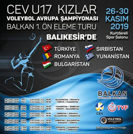 Türkiye Voleybol Federasyonu ile Balıkesir Büyükşehir Belediyesi’nin organizasyonunu birlikte gerçekleştirdiği CEV U17 Kızlar Avrupa Şampiyonası Balkan 1. Ön Eleme Turu maçları bugün başlıyor. Türkiye ile birlikte; Romanya, Bulgaristan, Yunanistan ve Sırbistan'ın yer alacağı ön eleme turu maçları 26-30 Kasım günleri arasında Kurtdereli Spor Salonu'nda yapılacak. Şampiyon olan takım Avrupa Şampiyonası’na direkt gitme hakkı kazanacak.