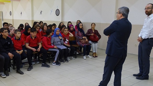 Havran İlçe Milli Eğitim Müdürü Yusuf Söbüoğlu, öğrencilerin motivasyonunu arttırmak ve akademik başarılarını desteklemek amacıyla Havran İmam Hatip Ortaokulu, Sekizeylül Ortaokulu ve Şehit Eyüp Karataş Ortaokulu’nun 8.sınıflarında öğrenim gören öğrencilerle bir araya geldi. Havran ilçesinde Öğrencilerin Başarıyı İzleme ve Geliştirme Projesi (BİGEP) kapsamında uygulanan deneme sınav sonuçlarıyla akademik çalışmaları değerlendiren İlçe Milli Eğitim MüdürüYusuf Söbüoğlu, onlara 8.sınıf oldukları için yakında ortaokulu bitireceklerini merkezi sınavlara da az bir süre kaldığından lise öğrenimleri için daha net karar vermeleri gerektiğini hatırlatıp öğretmen ve ailelerinin de rehberliğinde kendi ilgi alanları ve istekleri doğrultusunda mutlu olacakları bir üst öğrenim kurumunu tercih etmelerinin gelecek yaşamları için olumlu sonuçlar doğuracağını dile getirdi. İnsanın değerini mezun olduğu okullardan çok yaptığı güzel işlerin, ürettiklerinin, erdemli bir yaşamın belirlediğini vurguladı. Konu üzerinde örnekler vererek interaktif bir sohbet gerçekleştirdi. Sohbetin son bölümünde liselere geçiş kapsamında 5 Haziran tarihinde yapılacak merkezi sınava katılacak öğrenciler ile sınav hazırlıkları, sınav esnasında ve tercih döneminde dikkat edilecek hususlar ele alındı. Öğrencilerin sınavda istendik başarıyı elde edebilmeleri için Milli Eğitim Bakanlığının yardımcı kaynaklarından faydalanmalarını hatırlatan Müdür Söbüoğlu, sınav esnasında dikkatli olmanın, odaklanmanın, zorluk düzeyi farklı sorular karşısında soğukkanlılığı korumanın öneminin altını çizerek edinilen kazanımların pekiştirilmesi için bu süreçte verimli ve etkili çalışmaları gerektiğini vurguladı. Öğrencilere çok güvendiğini belirterek onlara zihin açıklığı ve muvaffakiyetler diledi. Haber: Ayhan KURT