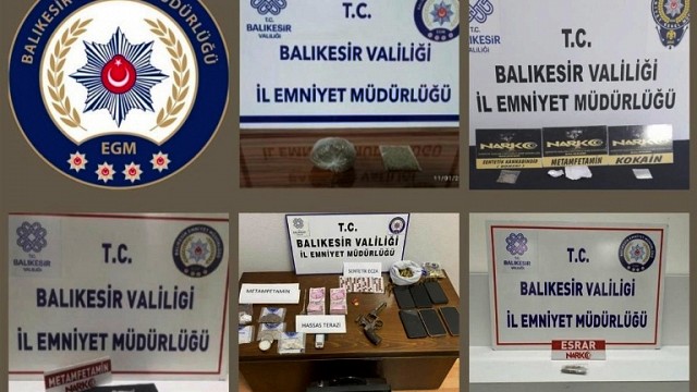 Balıkesir İl Emniyet Müdürlüğü Narkotik Suçlar ile Mücadele Şube Müdürlüğü ekiplerinin İlimiz genelinde; uyuşturucu madde satıcılığı yapanlar ve suçlularla mücadelesi aralıksız devam ediyor. Balıkesir Valiliğinden yapılan basın açıklamasında, “Balıkesir İl Emniyet Müdürlüğü Narkotik Suçlar ile Mücadele Şube Müdürlüğü görevlilerince; 11-13 Ocak 2024 tarihleri arasında yapılan çalışmalarda müdahale edilen (21) ayrı olayda; (159) gram Metamfetamin Maddesi, (71) gram Esrar Maddesi, (16) gram Skunk Maddesi, (74) gram Sentetik Kannabinoid (Bonzai) Maddesi, (8,4) gram Kokain Maddesi, (70) adet Sentetik Ecza Hap, (5) adet uyuşturucu madde kullanım aparatı (PAYP), (2) adet Hassas Terazi, Suçtan elde edildiği değerlendirilen 29.600 TL Para ele geçirilmiştir.Ayrıca;(28) Şüpheli şahsa işlem yapılmış, Adli makamlara sevk edilen (7) şahıs TUTUKLANMIŞ, Adli makamlarca ARANAN (2) şahıs yakalanmıştır. Şüpheli şahıslar hakkında adli işlemler başlatılmıştır. Kamuoyuna saygıyla duyurulur.” Denildi. Haber: Aydın DEMİRKAYA
