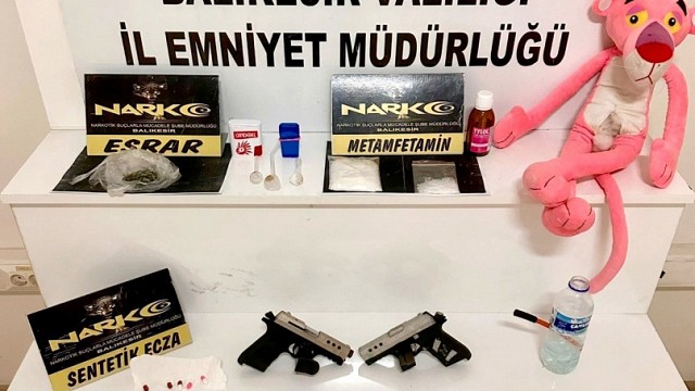Balıkesir İl Emniyet Müdürlüğü Narkotik Suçlarla Mücadele Şube Müdürlüğü ekiplerimiz İl merkezi ve İlçeler’de; uyuşturucu madde satıcılığı yapanlar ve suçlularla mücadeleye aralıksız devam ediyor. Balıkesir İl Emniyet Müdürlüğü’nden yapılan açıklamada, “Balıkesir İl Emniyet Müdürlüğü Narkotik Suçlarla Mücadele Şube Müdürlüğü ekiplerince 30.05.2025 günü il merkezinde yapılan çalışmada; 80 gram metamfetamin maddesi, 6 gram esrar maddesi, 2 adet Ruhsatsız tabanca, 5 adet Sentetik Ecza Hap, 4 adet Uyuşturucu Madde içiminde kullanılan aparat, Uyuşturucu Madde satışından elde edildiği değerlendirilen 12.570 TL, 100 Dolar, 1.123 Moldova Leyi ele geçirilmiştir. Konuyla ilgili yakalanan 3 şahıs hakkında "Uyuşturucu Madde Ticareti Yapmak" ve 6136 Sayılı Kanuna Muhalefet suçlarından tahkikata başlanılmıştır. Kamuoyuna saygıyla duyurulur.” Denildi. Haber: Hasan AKAR