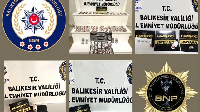 Balıkesir İl Emniyet Müdürlüğü Narkotik Suçları ile Mücadele Müdürlüğü ekiplerimiz merkez ve İlçeler’de; uyuşturucu madde satıcılığı yapanlar ve suçlularla mücadelesine aralıksız devam ediyor. Balıkesir İl Emniyet Müdürlüğü’nden yapılan açıklamada, “Balıkesir İl Emniyet Müdürlüğü Narkotik Suçları ile Mücadele Müdürlüğü birimince il genelinde 20.06.2025 günü yapılan 4 ayrı çalışmada; 948 Adet Sentetik Ecza hap, 143 gram Likit esrar, 12 gram metamfetamin maddesi, 97 Adet Sentetik Ecza maddesi, 90 kök Hint Keneviri, 49 gram Esrar maddesi ele geçirilmiştir. Olaylar kapsamında (10) şüpheli şahsa işlem yapılmış, adli makamlara sevk edilen (4) şahıs tutuklanmıştır.” Denildi. Haber: Hasan AKAR