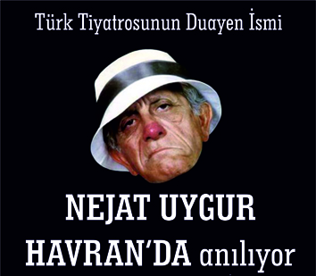 Türk Tiyatrosunun efsane ismi Nejat Uygur adına düzenlenecek olan "Onur Gecesinde" Havran'da anılacak. Geçtiğimiz yıl kaybettiğimiz Türk Tiyatrosunun duayen ismi Nejat Uygur anısına düzenlenecek onur gecesi 5 Nisan Çarşamba gecesi Havran Belediyesi Kültür Merkezinde gerçekleştirilecek. Nejat Uygur'un anılacağı geceye oğlu Süheyl Uygur'da katılacak. Babası adına onur ödülünü alacak olan Süheyl Uygur babasının onuruna oynanacak olan tiyatro oyununu da izleyecek. Havran Belediyesinin ev sahipliğinde düzenlenecek olan gecenin sponsorları ise Arbetta Evleri ve 91.1 Körfez FM. Gecenin hazırlıkları yoğun bir şekilde devam ederken oynanacak oyun ücretsiz ve tüm vatandaşlarımız davetlidir.