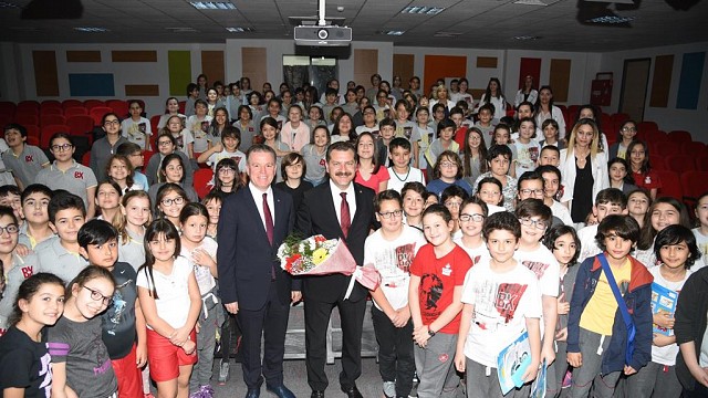 Balıkesir Büyükşehir Belediye Başkanı Ahmet Edip Uğur, Özel 52 Evler İlkokulu öğrencilerini ağırladı. Öğrencilerin isteklerini dinleyen Başkan Uğur, çocukların sorularını cevaplayarak deneyimlerini paylaştı. BAŞKAN UĞUR, ÖĞRENCİLERLE DENEYİMLERİNİ PAYLAŞTI Balıkesir Büyükşehir Belediye Başkanı Ahmet Edip Uğur, Özel 52 Evler İlkokulu 4. Sınıf öğrencilerini ağırladı. Öğrencilerin isteklerini dinleyen Başkan Uğur, çocukların sorularını cevaplayarak deneyimlerini paylaştı. Büyükşehir Belediyesi Karesi Toplantı Salonu’ndaki ziyarette Okul Müdürü Serdar Özen, sınıf öğretmenleri Deniz Temiz, Şeyma Çaltı hazır bulundu. Öğrencilerin sorularını yanıtlayan Başkan Uğur, Çay Deresi, Çamlık Tepesi ve Hilal Camii, Cunda Köprüsü, Mobil Mezbahalar, Yaş Sebze ve Meyve Hali gibi vizyon projeler hakkında bilgiler verdi. Büyükşehir Belediyesi olarak Balıkesir’in tüm ilçelerine hizmet vermek için çalıştıklarını ifade eden Başkan Uğur, Balıkesir merkezde 3 büyük alışveriş merkezi olacağını belirtti. Bunlardan birinin Çay Deresi Rekreasyon Alanı’nda inşa edilen Avlu Balıkesir olduğunu söyleyen Uğur, “Çay Deresi Ramazan ayında faaliyetlerimiz başlıyor. Daha sonra Yeni hastane önünde 10 Burada ve Çamlık Projesi hayata geçecek” diye konuştu. BAŞKAN UĞUR: “YAPTIĞIMIZ PROJELERİN HEPSİ ÖNEMLİ” Bir öğrencinin “Balıkesir’de yaptığınız projelerden en önemlisi hangisi?” şeklindeki soruya Başkan Uğur şöyle cevap verdi: “Balıkesir’de yaptığımız projelerin hepsi önemli. Önemsiz projemiz yok. Daha Pazartesi Günü yeni Sebze ve Meyve Hali’nin açılışını gece 02.00’da yaptık. İnsanların sağlığı için önemli bir proje. İstiyoruz ki insanlar sağlıklı gıda tüketsin. Şimdi yeni halde kontrollü bir şekilde sebze ve meyveler bütün çevreye dağılıyor”. Bir öğrencinin “Belediye başkanı olarak en çok önem verdiğiniz alan hangisi?” sorusuna ise” Başkan Uğur, “Birincisi insanların sağlığı, ikincisi çevre, üçüncüsü ise belediye başkanı teneffüs edilen havadan, kullanılan sudan, yenilen etten etten, ekmekten, sebzeden, insanların sosyal yaşantısından sorumlu. Çocuk Köyü yapıyoruz, kongre merkezi yapıyoruz. İstihdamdan, sosyal yaşamlarına kadar hepsinden sorumlu. Hepsine bakıyoruz. Yoluna da, kanalizasyonuna da, gıdasına da, kullandığa suya da. Hepsi Belediye başkanı için önemli. İnsanlar için önemli” dedi. Başkan Uğur soruların ardından öğrenciler ile hatıra fotoğrafı çektirerek, öğrencilere belediye çalışmalarının yeraldığı broşür ve çeşitli hediyeler takdim etti.