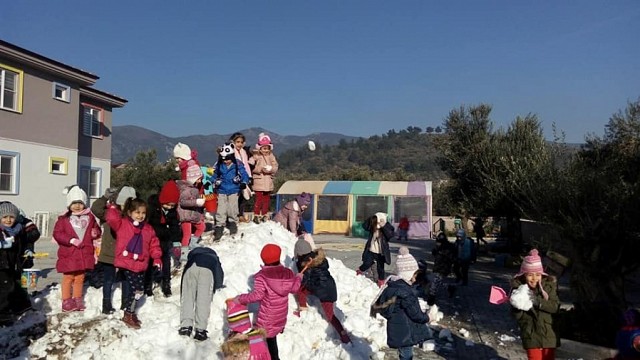 Edremit ilçesinde, öğrenciler, okul bahçesine kamyonla taşınan karlarla doyasıya kartopu oynadı. Hafta sonu Edremit’in yüksek kesimlerinde kar yağışı etkili olsa da Akçay mahallesine kar yağmadı. Hafta sonu birçok aile kar topu oynamak için Kazdağları'na çıktı. Kar topu oynama imkanı bulamayan bazı anaokulu öğrencileri olması üzerine okul yönetimi okula kamyon ile kar getirdi. 150 öğrencisi bulunan anaokulunda çoğu öğrenci ilk kez kar ile tanıştı. Okul Müdürü Meryem Arslankılıç, “Çocuklarımız hiç kar görmedi. Bu durum bizleri çok üzdü. Daha sonra kamyonu ve kepçesi olan velilerimize ulaştık. Çocuklarımız öğretmenlerimiz için okul bahçesine kar getirmek istediğimizi söyledik. Velilerimiz seve seve bu isteğimize yardımcı oldular. Kamyonlarla getirilen kar bahçeye döküldü. Çocuklarımız kardan adam yaptılar, kartopu oynadılar, çılgınlar gibi eğlendiler. Öğrencilerimizin hem kar görmelerini sağladık, hem de dersimizi uygulamalı olarak yaptık. Çocuklarımızın sevinci görülmeye değerdi” dedi (İHA)