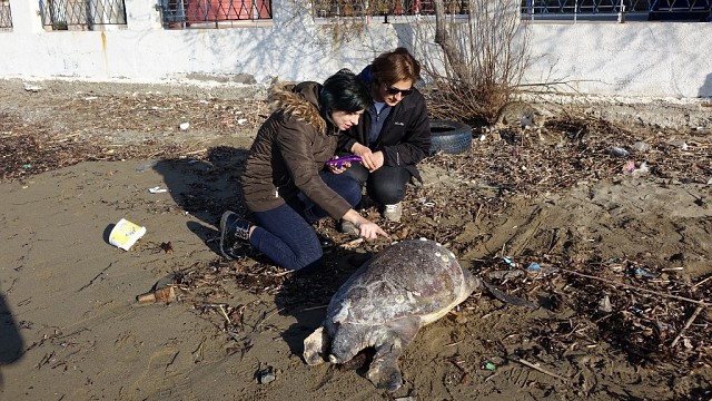 Çanakkale’nin Ayvacık İlçesine bağlı Küçükkuyu Beldesinde nesli tükenme tehlikesiyle karşı karşıya olan Caretta Caretta türü deniz kaplumbağası ölüsü karaya vurdu. Halk Plajında Deniz kaplumbağasının ölüsünü gören vatandaşlar durumu Küçükkuyu Belediyesi Zabıta Müdürlüğüne bildirdiler. Yaklaşık 45 kilo ağırlığında ve 75 Cm boyundaki Deniz Kaplumbağası için Ayvacık İlçe Tarım Müdürlüğünden bir ekip gelerek ölü kaplumbağa da inceleme yaptılar. Yetkililer Kaplumbağa da inceleme yaptıklarını ve sonucu Çanakkale Onsekiz Mart Üniversitesine bildireceklerini ifade ettiler. Kaplumbağa ölüsü daha sonra Belediye ekiplerince uygun bir yere gömüldü. Haber ve fotoğraflar: Hanife ERDİNÇ
