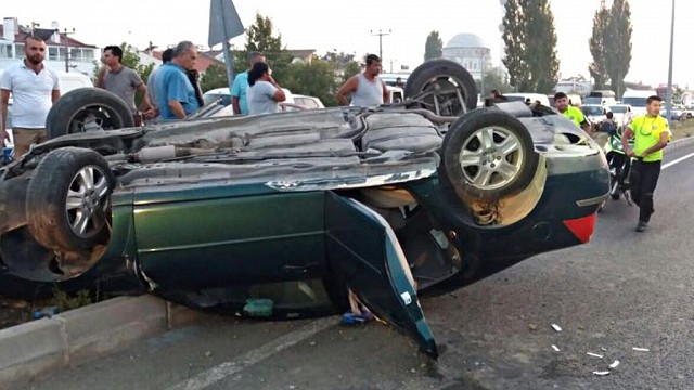 Balıkesir’in Edremit ilçesinde, otobüsün sıkıştırdığı otomobil orta bariyerlere çıkarak ters döndü. Ucuz atlatılan kazada, otomobilde bulunan 4 kişi yaralandı. Edinilen bilgiye göre kaza, akşam saatlerinde E-87 karayolu Çanakkale - Edremit arası Akçay Yeni Mahalle mevkiinde bulunan kavşakta meydana geldi. Yolcu otobüsünün sıkıştırdığı ileri sürülen Nafiz K. idaresindeki 01 NV 444 plakalı otomobil, sürücünün direksiyon hakimiyetini kaybetmesi sonucu orta refüje çıktıktan sonra takla attı. Kazada, otomobilde bulunan Nafiz K., Nimet K., Koray K., Macide Ç. ise itfaiye ekipleri tarafından sıkıştıkları otomobilden çıkartılarak, sağlık ekiplerine teslim edildi. Kazayla ilgili polisin incelemesi sürüyor. (İHA)