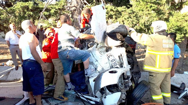 Balıkesir'in Ayvalık ilçesinde meydana gelen kazada bir kişi öldü, 2 kişi yaralandı. Edinilen bilgiye göre, Ayvalık’tan İzmir Dikili yönüne giden Cemil Tüzün idaresindeki 35 DED 37 plakalı otomobil yol kenarındaki ağaca çarptı. Çarpmanın etkisiyle hurdaya dönen araçta bulunan Rana Tüzün olay yerinde hayatını kaybetti. Otomobilde sıkışan sürücü ile Ejder Tüzün, İzmir ve Balıkesir itfaiyelerinin ortak çalışması ile kurtarıldı. Yaralılar, 112 Acil Servis ekipleri tarafından Dikili Devlet Hastanesi'ne kaldırıldı. (İHA)