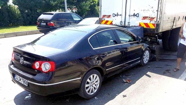 Balıkesir’in Edremit ilçesinde otomobilin kamyonun altına girdiği kaza ucuz atlatıldı. Edinilen bilgiye göre, kaza Akçay Mahallesi’nde öğle saatlerinde meydana geldi. Dikkatsizlik sonucu meydana gelen kazada, 41 KL 232 plakalı kamyonun altına 34 DM 7868 plakalı otomobil girdi. Şans eseri ucuz atlatılan kazada ile soruşturma sürüyor. (İHA)