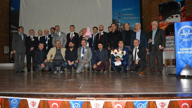 Edremit Müftülüğü tarafından Edremit Şükrü Tunar Kültür Merkezi'nde düzenlenen Kutlu Doğum haftası etkinliği çerçevesinde Uludağ Üniversitesi İlâhiyat Fakültesi Öğretim Üyesi Prof. Dr. Mehmet Emin Ay'ın "Hz. Peygamber ve Güven Toplumu" konulu konferans gerçekleşti. Edremit Şükrü Tunar Kültür Merkezi'nde düzenlenen konferansa vatandaşlar yoğun ilgi gösterdi, yer bulamayanlar programı ayakta izlediler. Uludağ Üniversitesi İlâhiyat Fakültesi Öğretim Üyesi Prof. Dr. Mehmet Emin Ay'ın "Hz. Peygamber ve Güven Toplumu" konulu konferansına Edremit Kaymakamı Ali Sırmalı, Edremit İlçe Müftüsü Sait Emin Arvas, Ak Parti Edremit ilçe Başkan Yardımcısı Mehmet Alamur, MHP Edremit İlçe Başkanı Ahmet Kabaklı, din görevlileri ve vatandaşlar katıldı. Sunuculuğunu Edremit İlçe Müftülüğü Şube Müdürü Adem Polat’ın yaptığı konferans Saygı Duruşu ve İstiklal Marşının okunması ile başladı. Hacı Hakkı Camiî Müezzin Kayyımı Himmet Kertik tarafından Kur’ân-ı Kerîm kıraati okundu. Diyanet İşleri Başkanı Mehmet Görmez’in 2017 Yılı Kutlu Doğum Haftası Mesajı sine vizyon halinde verilmesinin ardından programın açılış konuşması Edremit İlçe Müftüsü Sait Emin Arvas tarafından yapıldı. Edremit Müftüsü Sait Emin Arvas yaptığı konuşmada, “Din gönüllülerinin ve Kuran Kursu öğreticilerimizin gayretleriyle Edremit ilçemizde Kutlu Doğum Programları 1 haftadan beri Edremit’in çeşitli bölgelerinde icra ediyoruz, halkımızın yaptığımız programlara gösterdikleri ilgiden dolayı çok teşekkür ediyorum. İlçe halkımızın teveccühleri, Hz. Muhammed’e olan sevgileri herkes tarafından takdirle karşılanmıştır” dedi. Şiir okuma dalında derece alan Remzi Molvalıoğlu Mesleki ve Teknik Anadolu Lisesi öğrencilerinden Burak Öğüt Arif Nihat Asya’nın “Dua” şiiri solonu dolduran izleyiciler tarafından coşkuyla alkışlandı. Kısa bir özgeçmişi anlatıldıktan sonra kürsüye çıkan “Hz. Peygamber ve Güven Toplumu” konulu konuşma yapan Prof. Dr. Mehmet Emin Ay peygamberimizin hayatıyla ilgili örnekler vererek nasıl güvenilir bir toplum olacağımız konusunda bilgiler vererek dinleyicileri aydınlattı. Program sonunda Edremit Kaymakamı Ali Sırmalı tarafından M. Emin Ay’a çiçek takdim edildi