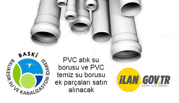 BASKİ Genel Müdürlüğü tarafından PVC Atıksu Borusu, PVC Temizsu Borusu Ve Ek Parça Alım İşi mal alımı 4734 sayılı Kamu İhale Kanununun 19 uncu maddesine göre açık ihale usulü ile ihale edilecek olup, teklifler sadece elektronik ortamda EKAP üzerinden alınacaktır. İhale; 03 Mart 2021 tarihine Saat: 11.00 da BASKİ Genel Müdürlüğü Ek Hizmet Binası Gümüşçeşme Mah. Gökdeniz Cad. No: 43/B Altıeylül/BALIKESİR adresinde yapılacaktır. Detaylı bilgi için tıklayınız