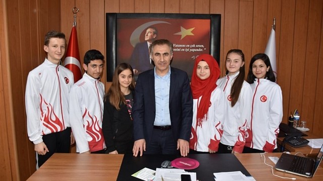 Şampiyon Taekwondocular Müdür Arıcıoğlu'nu ziyaret etti
