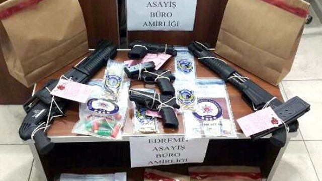 Balıkesir’in Edremit ilçesinde, iş yeri ve araçlara kurşun yağdıran şehir magandaları polisin sıkı takibi sonucu yakalandı. Temmuz ayında ve önceki gece Akçay Mahallesi Sarıkız 330. Sokak’ta çıkan silahlı çatışma sırasında, 4 şüpheli şahıs olay yerinde yakalandı. Şahısların üstünden 3 adet ruhsatsız tabanca çıktı. Zanlılar hakkında 6136 sayılı kanuna muhalefet ve genel güvenliğin kasten tehlikeye sokulmasından işlem yapıldı. Soruşturmayı derinleştiren Edremit Emniyet Müdürlüğü Asayiş Büro Amirliği ekipleri, azmettiricisi olduğu ileri sürülen S.F'nin yakalanması için 2 ayrı eve operasyon düzenledi. Yapılan aramada 2 adet ruhsatsız av tüfeği, 2 sahte kimlik, 3 sahte ehliyet, uyuşturucu hap çok sayıda tüfek ve tabanca mermisi, üstünde S.F’nin vesikalık fotoğrafının bulunduğu boş evlilik cüzdanını ele geçirdi. Gözaltına alınan 5 kişi adliyeye sevk edildi. (İHA)