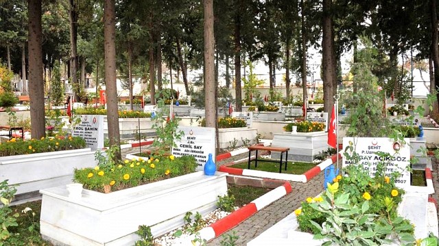 Balıkesir'de bulunan Şehit mezarları bakımdan geçirilerek yenileniyor. Balıkesir Valisi Ersin Yazıcı’nın talimatı ile mezarlarda yenileme ve tadilat işlemleri başladı. Balıkesir'in merkez ve ilçelerinde bulunan Şehit mezarları, Vali Ersin Yazıcı'nın talimatı ile yenilenme ve bakım çalışmasına alındı. Yapılan çalışma kapsamında 71 Şehit mezarının 45 tanesi yeniden yapılırken, 6'sının ise onarım çalışmaları yapıldı. Mezarlardan 15 tanesi ise ilk defa yapılırken, 5'inin ise baş taşları değiştiriliyor. Yapılan çalışmada, mezarların başlarına da Türk bayrağı asılı direkler takıldı. Kutsal vatan topraklarını canları pahasına müdafaa ederek şehitlik mertebesine ve onuruna erişen aziz şehitleri minnet ve şükranla hatırlayacaklarını belirten Vali Yazıcı, "Şehitlerimize karşı düşen görevlerimiz var bu görevleri en iyi şekilde yerine getirmekle mükellefiz. Ülkemizin bölünmez bütünlüğü adına şehitlerimizin ve gazilerimizin vermiş oldukları mücadele her zaman akıllarımızda yer alacak. Onlar bizim bu topraklarda özgürce yaşayabilmemiz için al bayrağın şerefle dalgalanması için canlarını verdiler. Biz de onların aziz hatıralarına saygıyla çalışmalarımızı yürütüyoruz. Biliyoruz ki, onlar için ne yapsak az. Onları hiçbir zaman unutmayacak, unutturmayacağız. Aziz Şehitlerimizi her zaman saygı ve sevgiyle hatırlayacağız. Bu konuda var olan hassasiyetimiz her yıl devam edecek. Bu vesileyle bu milletin huzur ve güven içerisinde, bu devletin ilelebet ve bu toprakların da sonsuza kadar vatan olarak kalması için canlarını vererek şehit olma payesine ulaşan şehitlerimizin ruhları şad olsun diyor, gazilerimize sağlıklı ve uzun ömürler diliyorum" dedi. (İHA)