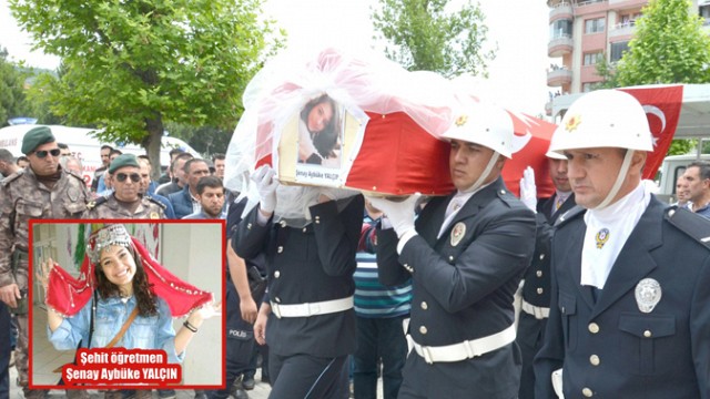 Batman'ın Kozluk ilçesinde düzenlenen terör saldırısında şehit olan müzik öğretmeni Şenay Aybüke Yalçın, gelin duvağıyla son yolculuğuna uğurlandı. Batman'ın Kozluk ilçe merkezinde, önceki gün daha önceden gasp ettikleri ve içerisine patlayıcı yerleştirdikleri ticari araçtan inen teröristler, belediye başkanının aracına uzun namlulu silahlarla saldırı düzenlemişti. Saldırıda, 4 öğretmen arkadaşı ile birlikte başka bir araçla olay yerinden geçen ve Ekim 2016'da ilçeye müzik öğretmeni olarak atanan 23 yaşındaki Şenay Aybüke Yalçın, kurşunların hedefi olarak yaralanmıştı. Ağır yaralı olarak İlçe Devlet Hastanesine kaldırılan Yalçın, burada yapılan müdahalelere rağmen kurtarılamayarak şehit olmuştu. Şehit öğretmenin cenazesi Batman'daki törenin ardından dün uçakla Ankara'ya daha sonra buradan da akşam saatlerinde karayoluyla doğum yeri olan Osmancık ilçesine getirildi. Sabah saatlerinde Osmancık Devlet Hastanesi morgundan alınan genç öğretmenin al bayrağa sarılı naaşı, cenaze töreninin yapılacağı İlçe Kaymakamlığı binası önüne getirildi. Şehit öğretmen Şenay Aybüke Yalçın için düzenlenen cenaze törenine katılmak üzere Milli Eğitim Bakanı İsmet Yılmaz da ilçeye geldi. Gözyaşlarının sel olduğu cenazede lanet yağdı. Kızının tabutu başında konuşan Sadık Yalçın, Türlerin 5 bin yıldır bu topraklarda olduğunu belirterek, "5 bin yıl değil, 500 bin yıl daha buradayız Allah'ın izniyle. Kimse bizleri yıldıramaz. Bu vatan tarihte Türk kalmaya devam edecek. Bugün de Türk, yarın da Türk ne mutlu Türküm diyene" dedi. Şehit öğretmenin arkadaşları Aybüke öğretmenin tabutuna sarırılarak gözyaşı döktü. Bu sırada şehidin amcası Ertuğrul Şahin, ağlayanları uyararak terör örgütünü sevindirmeyeceklerini belirtti. Osmancık Kaymakamlığı önünde düzenlenen cenaze töreninin ardından şehit öğretmenin cenazesi Beyler Çelebi Camii'ne getirildi. Burada düzenlenen cenaze törenine Milli Eğitim Bakanı ismet Yılmaz, AK Parti Çorum milletvekilleri Salim Uslu ve Ahmet Sami Ceylani, CHP Çorum Milletvekili Tufan Köse, Vali Necmettin Kılıç, şehidin ailesi, yakınları ve binlerce vatandaş katıldı. İl Müftüsü Ahmet Akın’ın kıldırdığı cenaze namazının ardından şehit öğretmenin cenazesi Asri Mezarlık Şehitliğinde toprağa verildi. (İHA)