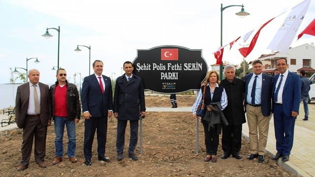 İzmir adliyesi önünde gerçekleşen hain saldırıda canını feda ederek, yüzlerce insanların hayatını kurtaran kahraman polis Fethi Sekin’in ismi Balıkesir’in Ayvalık ilçesinde kendi adını taşıyan bir parkta yaşayacak. Ayvalık Belediyesi tarafından; Aliçetinkaya Mahallesi Tapu Kadastro Sitesi deniz kıyısında yaptırılan 3 dönümlük yaşam alanına şehit polis Fethi Sekin’in adının verilmesinin ardından, 23 Nisan Ulusal Egemenlik ve Çocuk Bayramı’nda da parkın resmi açılışı gerçekleştirildi. Ayvalık’ın yüzölçümü olarak en büyük ve en güzel parklarından biri olmaya namzet yaşam alanının açılışında, Ayvalık Belediye Başkanı Rahmi Gençer, İlçe Emniyet Müdürü Fikret Bakır, Ayvalık Belediye Başkan Yardımcısı Gökay Bacan, Mahalle Muhtarı Halil Gencer, mahalle sakinleri hazır bulundu. Ayvalık Belediyesi bandosunun konser verdiği açılışta konuşan Ayvalık Belediye Başkanı Rahmi Gençer, İzmir’de teröristlere karşı tek başına mücadele ederek yüzlerce masum insanın hayatını kurtarırken şehit olan Polis Memuru Fethi Sekin’i, Türk Milleti’nin asla unutmayacağını vurguladı. Törende Fethi Sekin Parkı’nın yanı sıra ilçede 5 adet daha çok amaçlı yaşam alanının Ayvalık halkına kazandırılmasının hedeflendiği açıklanırkne Şehit Polis Fethi Sekin’in Babası Mehmet Zeki Sekin ile telefonla görüşüldü. Açılış konuşmasının ardından Başkan Gençer ve İlçe Emniyet Müdürü Fikret Bakır ve beraberindekiler parkı gezerek, vatandaşlarla sohbet etti. (İHA)