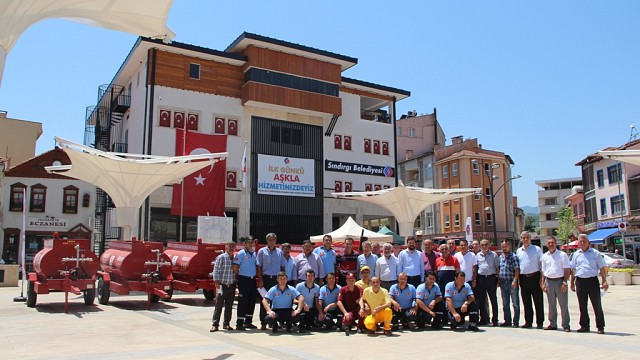Sındırgı ilçesinde yangınlarda ilk müdahalede ve çeşitli amaçlarla da kullanım özelliğine sahip arasöz dağıtımı gerçekleşti. Cumhuriyet Meydanında düzenlenen sade bir tören ile arasözü olmayan 10 mahalleye Balıkesir Büyükşehir Belediyesi İtfaiye Daire Başkanlığınca temin edilen arasözleri teslim edildi. Büyükşehir yasası ile birlikte artan hizmet ağı ve bütçe sayesinde sayısız hizmet hızlı bir şekilde ilerlemeye başladı. Hizmetlerin yanında da özellikle yaz aylarında yangına ilk müdahale de ve mahallerin yıkama işlemlerinde kullanılmak üzere Sındırgı ilçesinin tüm mahallelerine arasözler teslim edildi. Çeşitli aralıklarla dağıtılan 26 Adet arasöze ilave olarak arasözü olmayan Kocakonak, Kertil, Pürsünler, Mandıra, Çaygören, Çelebiler, Çaltılı, Cüneyt, Kızılgür, Ormaniçi mahallerine verilen arasöz ile tüm mahaller arasözlerine kavuşmuş oldu. Büyükşehir Belediyesi tarafından Sındırgı ilçesine 3 yılda 36 arasöz kazandırıldı. Arasözler Cumhuriyet Meydanında düzenlenen sade bir törenle muhtarlara teslim edildi. Törene Sındırgı Belediye Başkanı Ekrem Yavaş, AK Parti İlçe Başkanı Mustafa Atla, MHP İlçe Başkanı İsmail Tavşanoğlu, Orman İşletme Müdürü Bekir Doğan Demir, başkan yardımcısı Halil Aldemir, meclis üyeleri, itfaiye ve belediye personeli, muhtarlar ve vatandaşlar katıldı. Arasözlerin yangına ilk müdahalede öneminin oldukça yüksek olduğunu ve bakımlarının düzenli olarak yapılması, dolu tutulması gerektiğini vurgulayan Sındırgı Belediye Başkanı Ekrem Yavaş “ Büyükşehir olmanın avantajlarını her alanda hissediyoruz. Özel idare zamanında ancak 5-10 mahalleye arasöz temini yapılırken 3 yıl gibi kısa bir sürede Büyükşehir Belediyemiz sayesinde arasözü olmayan mahallemiz kalmadı. Bu yangın tankerleri için muhtarlarımızdan tek ricam korunaklı yerlerde muhafaza etmeleri ve bakımlarını düzenli olarak yapıp, dolu tutmaları. Yangın tankerleri ve ilçemize kazandırdığı tüm hizmetler için Büyükşehir Belediye Başkanımız Ahmet Edip Uğur’a teşekkürlerimi sunuyorum.“ dedi.