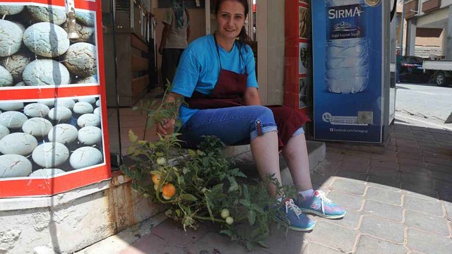Ramazan Adıgül isimli işletmeciye ait Narin Börek dükkanı önünde kilit parke taşları arasında kendiliğinden çıkan domates ürün vermeye başladı. İş yeri kapısında kendiliğinden çıkan domates fidanına gözü gibi bakan Ramazan Adıgül, domatesi büyümekle kalmayıp ürün verdi. Müşterilerin ilgisini çektiğini belirten Ramazan Adıgül, personel tarafından sulanan domatesin taşların arasında yetişip ürün vermesi bizi çok şaşırttığını belirtti. Haber ve fotoğraf: Hanife ERDİNÇ