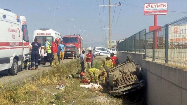 Balıkesir'de meydana gelen trafik kazasında taklalar atan otomobildeki 2 kişi, kazayı hafif sıyrıklarla atlattı. Edinilen bilgiye göre, Balıkesir-Bandırma karayolu Toru Un mevkiinde içerisinde iki kişinin bulunduğu 26 PD 337 plakalı otomobil, sürücünün direksiyon hakimiyetini kaybetmesi sonucu taklalar atmaya başladı. Bir fabrikanın duvarına çarparak ters duran otomobildeki 2 kişi vatandaşlar tarafından sağ çıkarıldı. Kazayı hafif sıyrıklarla atlatan M.M. ve R.M., olay yerine gelen sağlık ekiplerinin müdahalesinin ardından Bandırma Devlet Hastanesi'ne kaldırıldı. Kazayla ilgili tahkikat devam ediyor. (İHA)