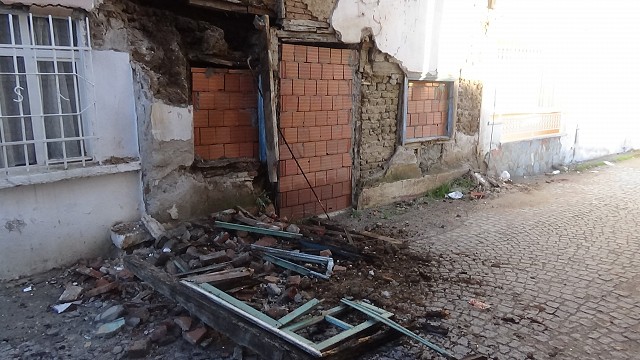 Balıkesir’in Edremit ilçesinde sabaha kadar etkili olan sağanak yağmurda tarihi bir binanın duvarı çöktü. Aynı sokakta bulunan bir çok tarihi kerpiç bina da yıkılma tehlikesiyle karşı karşıya Gazi İlyas Mahallesi 85. Sokaktaki tarihi binanın ikinci katının duvarı kuvvetli yağışa dayanamayarak çöktü. Gece saatlerinde büyük bir gürültü ile çöken binanın etrafında tedbir alındı. Aynı sokakta bulunan birçok kerpiç bina da yağıştan olumsuz etkilendi. Bu binalar da yıkılma tehlikesi ile karşı karşıyalar. Yıkılan bina sebebiyle 85. Sokak araç ve yaya trafiğine kapatıldı. (İHA)