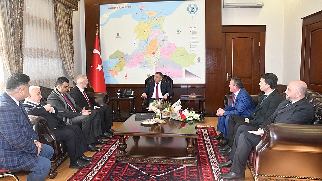 Türkiye Seyahat Acentaları Birliği (TÜRSAB), Çanakkale-Balıkesir Bölge yöneticileri Vali Ersin Yazıcı'yı makamında ziyaret etti. TÜRSAB Çanakkale -Körfez Bölge Temsil Kurulu Yönetim Kurulu Başkanı Ahmet Çelik ve yeni seçilen üyeler, Vali Yazıcı'yı makamında ziyaret etti. Vali Ersin Yazıcı, Türkiye Seyahat Acentaları Birliği (TÜRSAB), Çanakkale -Körfez Bölge Temsil Kurulu Yönetim Kurulu Başkanı Ahmet Çelik ve yönetim kurulu üyeleriyle bir süre görüşerek sohbet etti. Ziyarette TÜRSAB Körfez Bölge temsilcileri, Vali Ersin Yazıcı ile birlikte turizm sezonunu değerlendirerek önümüzdeki dönemler için yapılacak kısa ve uzun vadeli çalışmalarla ilgili de fikir alışverişinde bulundu.