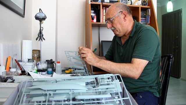 Balıkesir’in Edremit ilçesinde yaşayan ve 40 yıldır modelcilik yapan Hüseyin Nejat Arta, Türk Hava Kuvvetleri'nin 106 yıllık tarihinde uçan uçakların modellerini yapıyor. Türk havacılık tarihine yaşadıkları olaylar ile imza atan uçakların küçük boyutlarda ölçülendirilmiş modellerini hobi olarak yapıyor. Bundan kırk yıl önce bir oyuncakçıda satılan ölçekli plastik model ile başlayan ölçekli statik model uçak tutkusu ile binlerce model yapan Hüseyin Nejat Arta daha sonra yaptığı modellerde Türk Hava Kuvvetleri'nin envanterine girmiş olan uçakları modellendirmeye başladı. Özellikle bir hikayesi olan uçakları modellemeye çalıştığını söyleyen Arta Kıbrıs Savaşında düşürülen Cengiz Topel’in uçağı, Suriye tarafından vurulan RF-4 keşif uçağı gibi uçakları tercih ettiğini ifade etti. Uçakların birebir aslının küçültülmüş kopyalarını yapan Hüseyin Nejat Arta, “Fiili olarak yaklaşık 40 yıldan bu yana modelcilik yapıyorum. Ağırlıklı olarak şu anda Türk Hava Kuvvetlerinin kullanmış olduğu veya kullanmakta olduğu uçakları yapıyorum. Yeri geldiği zamanda yabancı ülkelere ait uçakları da yapıyorum. Genelde bir hikayesi olan uçaklar üzerinde çalışıyorum örneğin burada gördüğünü RF-4 Suriye tarafından düşürülmüş olan uçağımız. Onu duyduğum zaman çok üzüldüm. Hikayesi de çok acıydı. O uçağı yapmak istedim. Bu tür hikayeler ile maketler ortaya çıkıyor. Uçakların bazıları kaza kırım geçirmiş uçaklar, kimisi bizi yurt dışında temsil etmiş uçaklar” dedi. Binlerce uçak modeli yapan Arta gençlere seslenerek, “Bu hobiye başlamak için önce havacılığı sevmek lazım. Uçakları sevmek gerekiyor. Bununla beraber birazda el yatkınlığı var ise zaten kendiliğinden meydana çıkıyor. Sabır, dikkat isteyen bir uğraşı. İnsanları iyi yönde etkiliyor. Örneğin ben çalışırken ve daha sonra emekli olduğum zaman son derece güzel vakit geçiriyorum. Gençlere bu hobi ile uğraşmalarını tavsiye ederim” diye konuştu. Binlerce uçak modeline imza atan Hüseyin Nejat Arta yaptığı uçak modellerini evinde saklamakta ve sergilemekte zorluk çektiğini bir çoğunu da model severlere hediye etiğini ayrıca bu işe gönül vermiş ama zamanı olmayan kişiler içinde uçak modeli yaptığını ifade etti. (İHA)