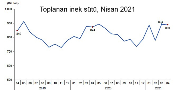 Ülkemizde ticari süt işletmelerince Nisan ayında 889 bin 725 ton inek sütü toplandı